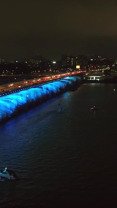 Hwang Dong-Hyuk, sutradara Squid Game, merancang latar set imersif di jembatan ikonis Jamsugyo Bridge, Seoul, di mana proyeksi cahayanya merefleksikan energi luar biasa sebuah kota metropolitan di masa lalu, masa kini, dan masa depan berpadu dalam harmoni.