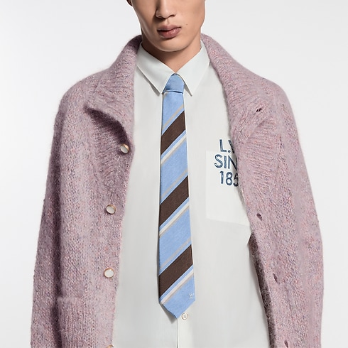 Dibuat di Italia, Cricket tie yang bergaya maskulin ini hadir dalam material sutra murni bernuansa biru dan cokelat. Motif garis jacquard berwarna putih dan emas yang rapi memperlihatkan seni jahit dan teknik pembuatan terbaik khas India yang selalu terlihat di setiap pertandingan olahraga populer.