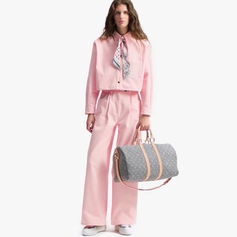 Keepall Bandoulière 45 ini dibuat dari material Monogram Denim cotton bernuansa lembut. Aksen trimming berbahan natural cowhide-leather dan hardware berwarna light gold menghadirkan kesan elegan. Detail rivet pada tali sampingnya terinspirasi dari koper hard-sided klasik Rumah Mode. Sementara handle atas serta tali bahu yang dapat dilepas dan disesuaikan memberikan berbagai opsi pemakaian.