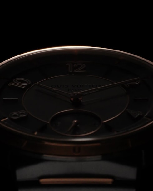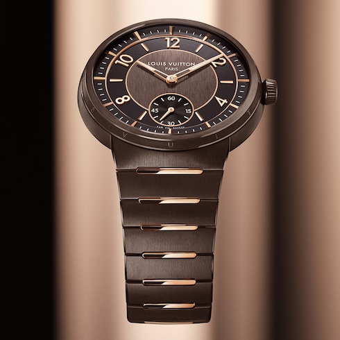 Arloji unisex yang dihiasi dengan sentuhan akhir yang kontras ini menampilkan gelang terintegrasi pertama dari Louis Vuitton, dipadukan secara sempurna dengan casing rampingnya – memberikan kenyamanan dan kelenturan melalui garis lengkungnya.
