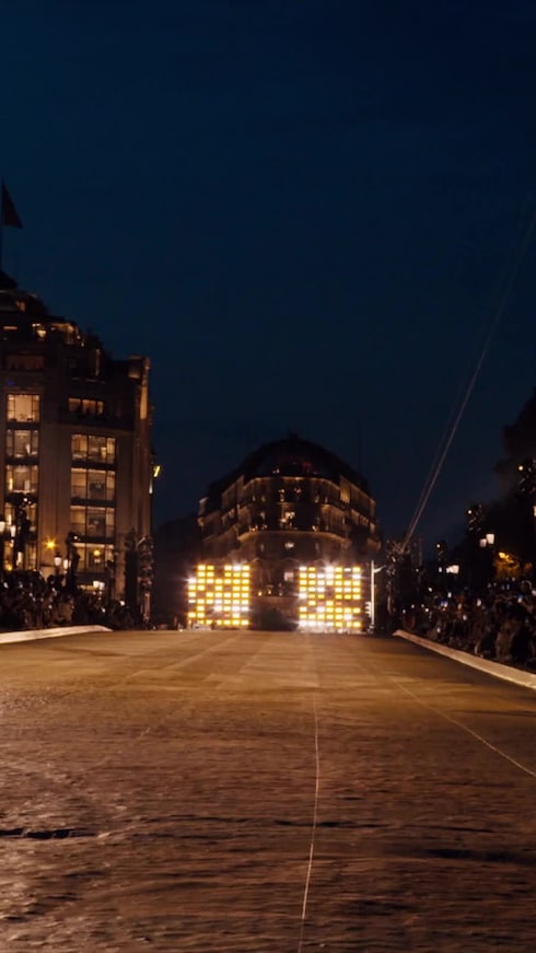 Como um monumento simbólico para a Louis Vuitton, a Pont Neuf Bridge em Paris se transforma em um palco iluminado, adornado com o icônico Damier.
