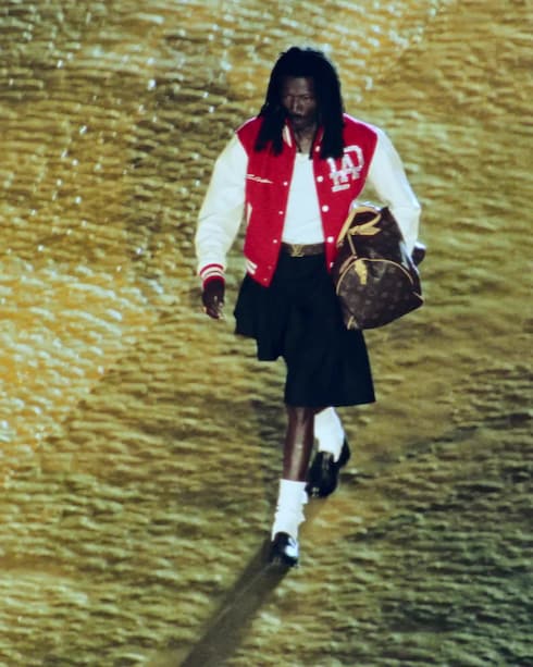 A Coleção Masculina se inspira na energia do sol, oferecendo silhuetas revitalizadas que expressam os emblemas da Maison. O motivo digitalizado "Damoflage" encontra os icônicos Damier e Monogram, prestando uma homenagem ao Savoir-Faire da Louis Vuitton, com uma visão pioneira.