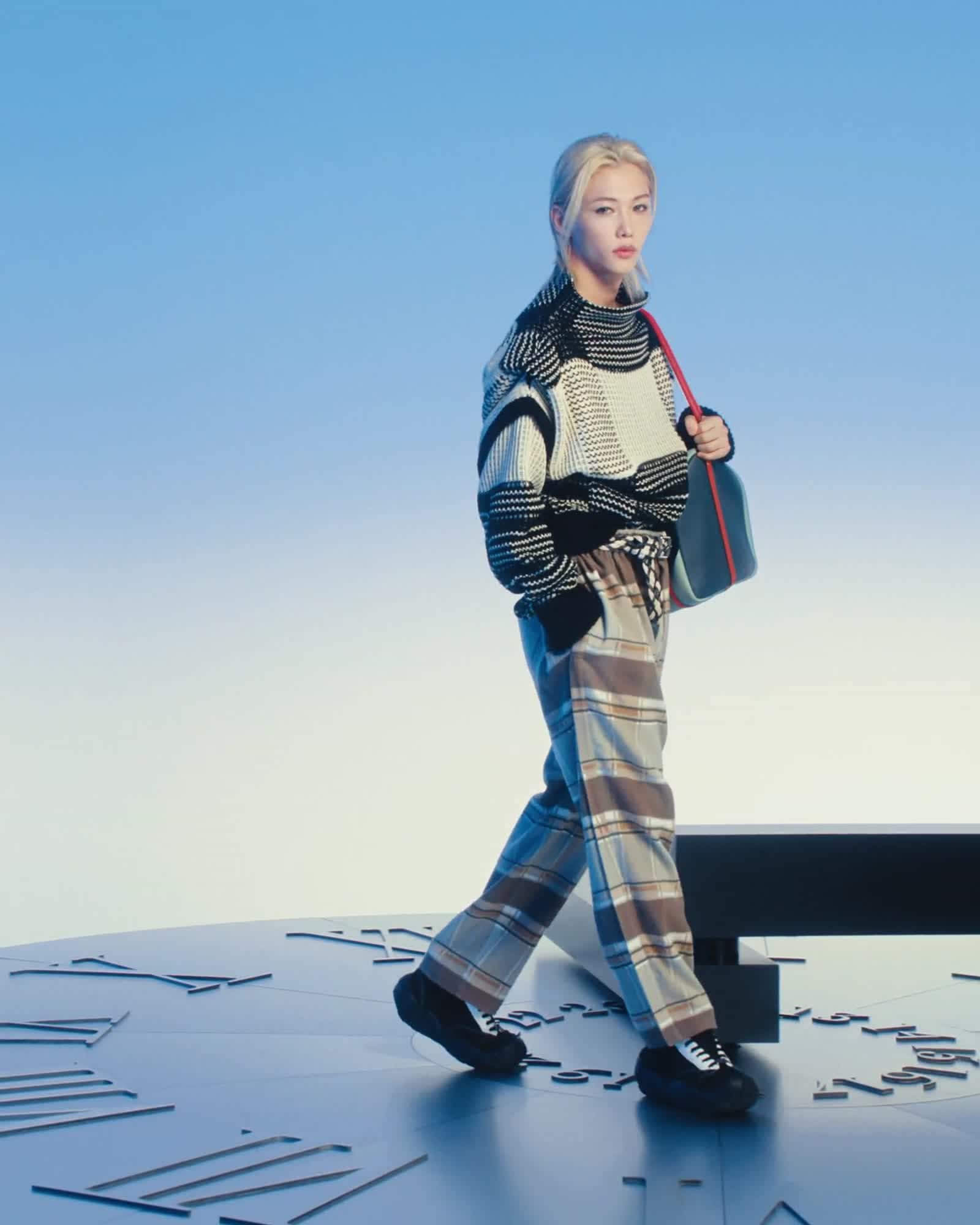 Em uma exibição ousadamente eclética, roupas utilitárias e vestidos com babados são acompanhados por bolsas, sapatos e acessórios emblemáticos em proporções marcantes. Revelada com vibrantes toques de cor e estampas gráficas, a coleção apresenta uma colaboração com o grupo de música eletrônica Kraftwerk.