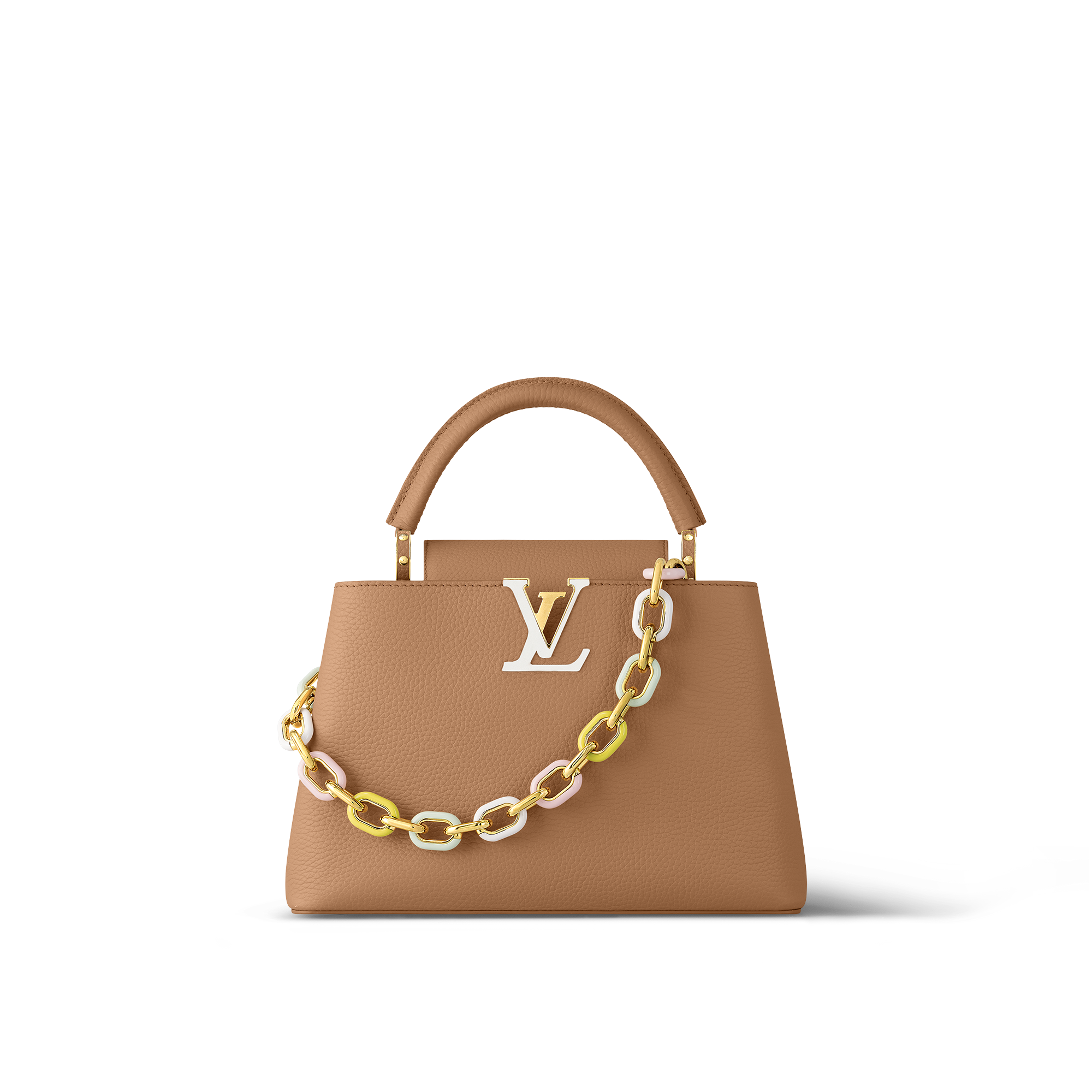Recebendo o nome da primeira loja da Louis Vuitton, aberta em 1854 na rue Neuve-des-Capucines, perto da Place Vendôme em Paris, a bolsa Capucines se destaca como um ícone de elegância atemporal.