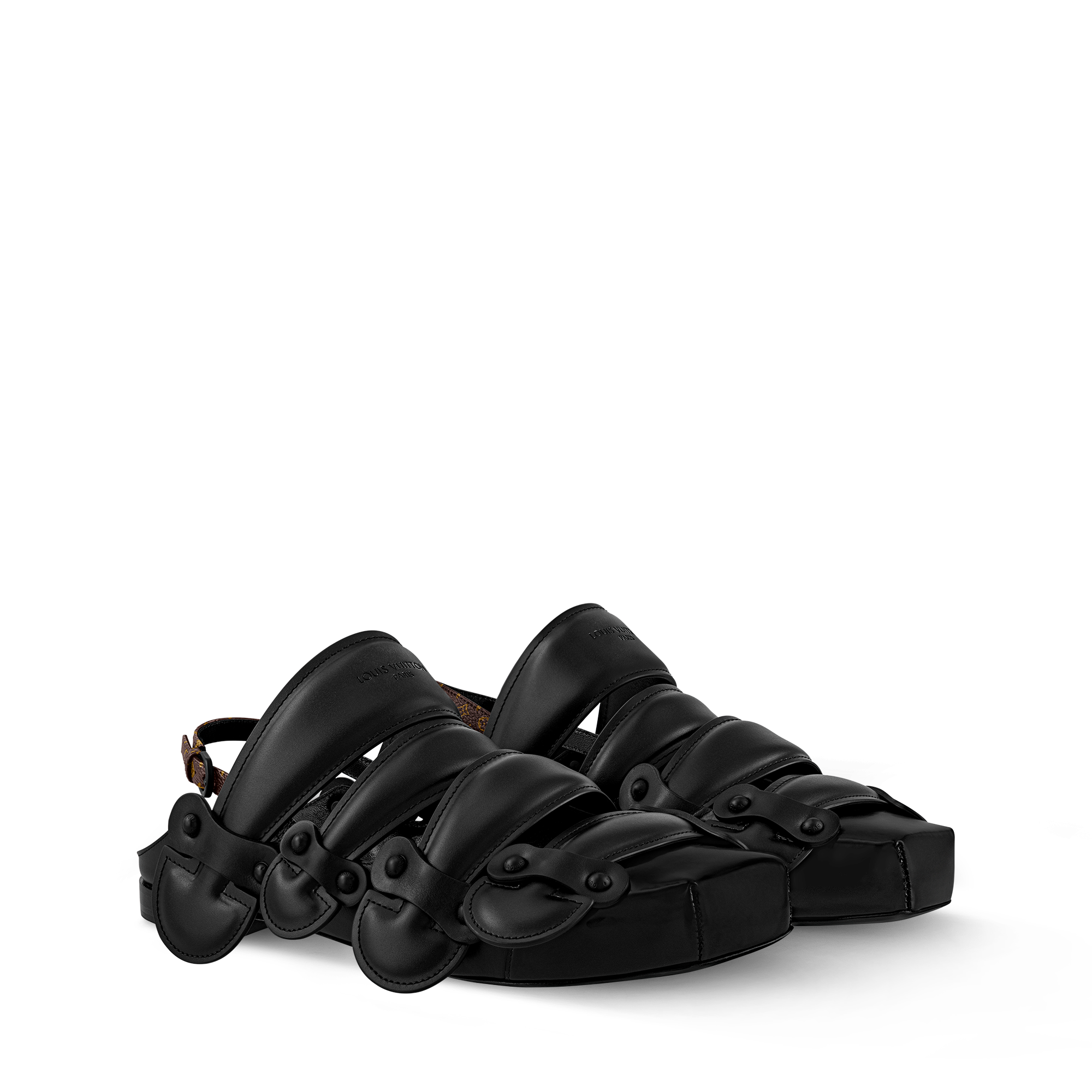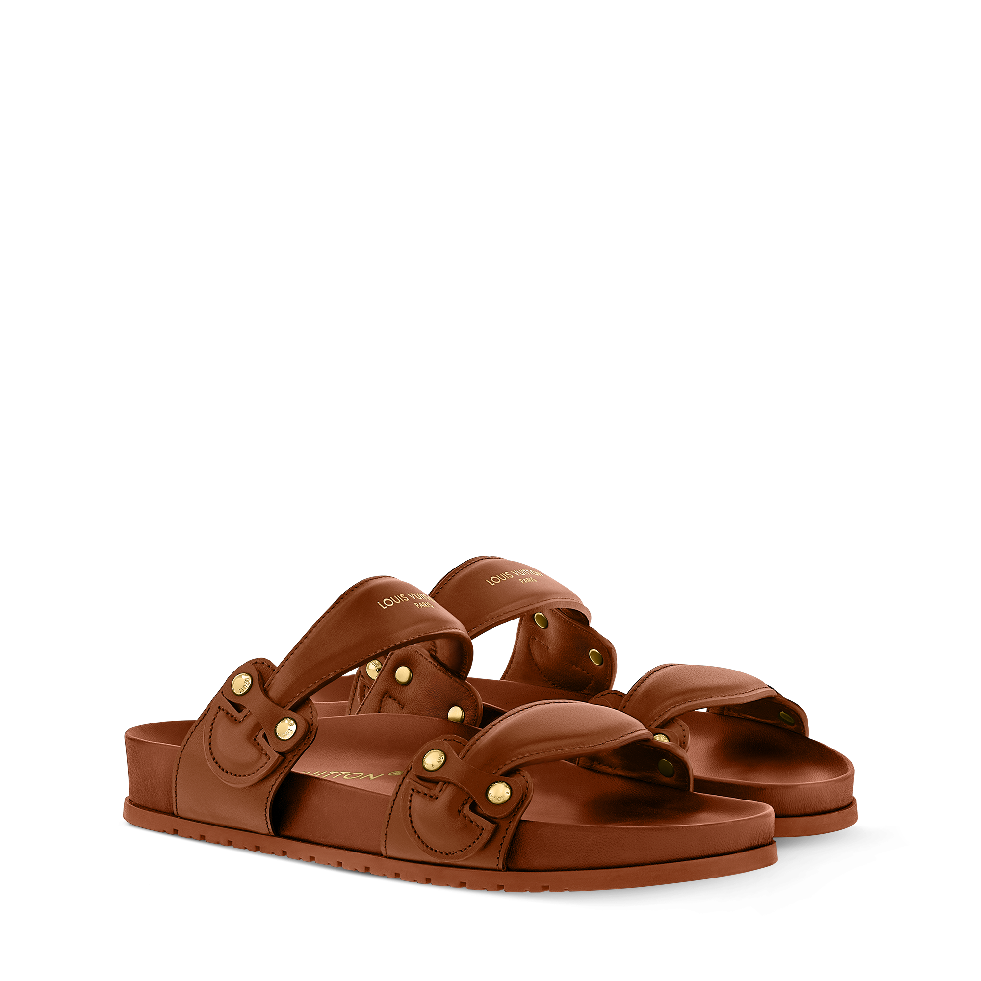 Vista um dos muitos modelos femininos da coleção de mules e chinelos femininos da Louis Vuitton. Essas peças elegantes valorizam qualquer look: escolha entre rasteirinhas, flatforms e plataformas ou modelos com salto tipo kitten heels ou stiletto.
