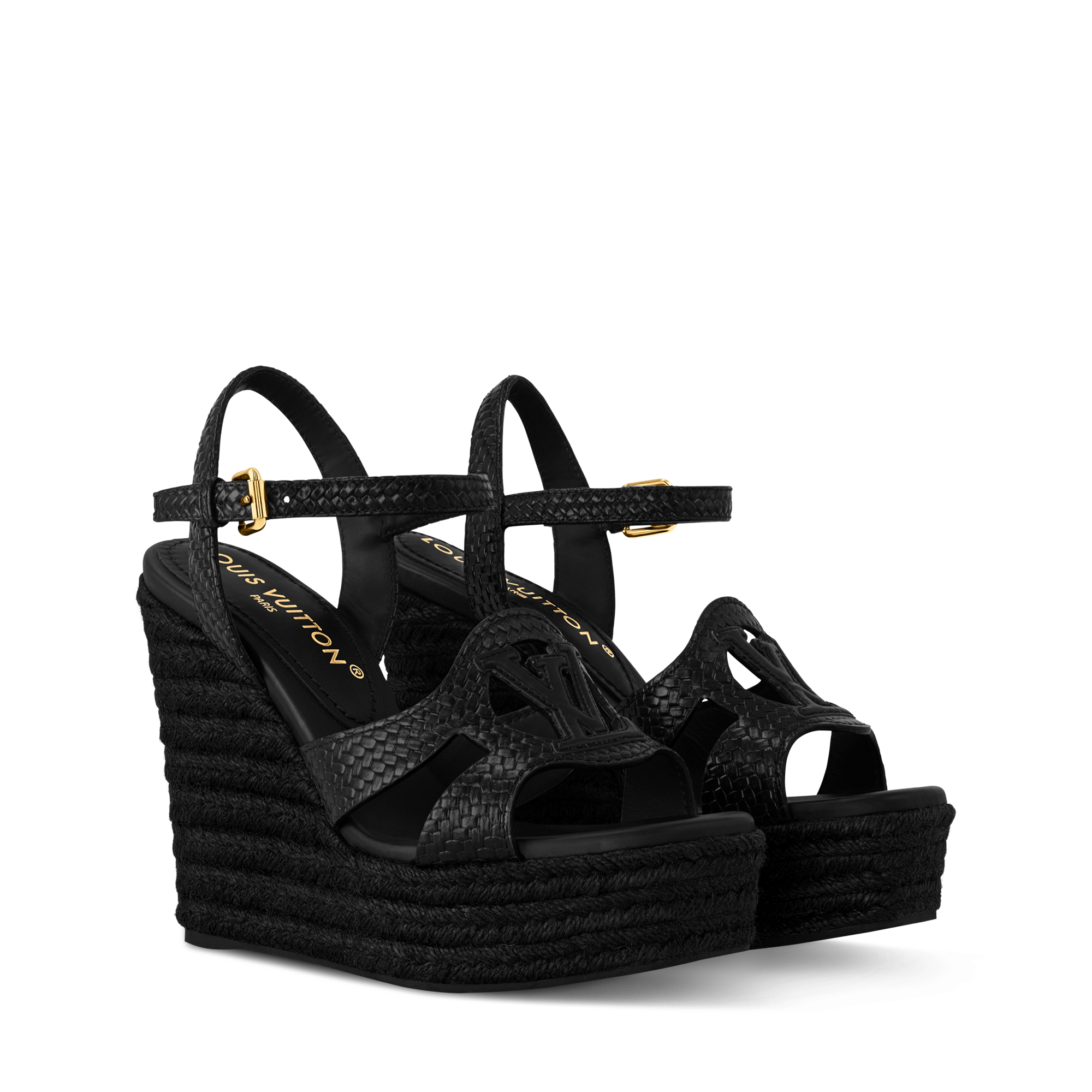 A coleção de sandálias e alpargatas femininas da Louis Vuitton inclui modelos flat, anabela, plataforma e com tiras. Escolha o glamour de um modelo de salto alto para a noite ou a sofisticação descontraída de uma alpargata: todas esses calçados elegantes foram cuidadosamente confeccionadas na Itália e são decorados com detalhes icônicos da Maison.