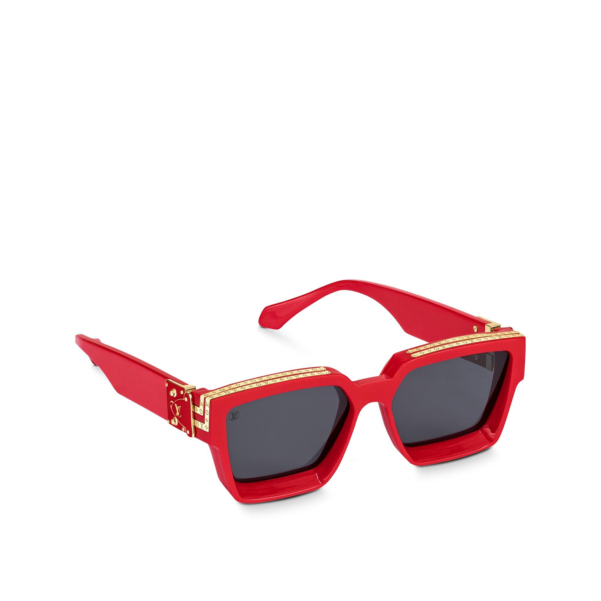 Os óculos de sol 1.1 Millionaires fazem referência aos óculos usados na Chicago de Al Capone, um antigo centro artístico do Diretor Artístico Virgil Abloh. Este par apresenta uma frente chanfrada profunda e uma cor contrastante vívida graças ao padrão Monogram dourado detalhado na parte de cima. As dobradiças S-lock são um toque chamativo tirado dos óculos de sol encontrados nos arquivos da Maison.