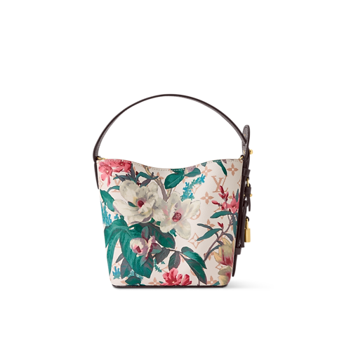 Reimagined as part of the Monogram Eden collection, this All In BB is crafted from Monogram Dune canvas elevated with a vibrant floral pattern. The classic bucket-shaped profile is trimmed with cowhide and accented with a gold-toned padlock and signature LV name tag. Inside, there is a removable zipped pouch and enough space to store a phone, wallet and keys.