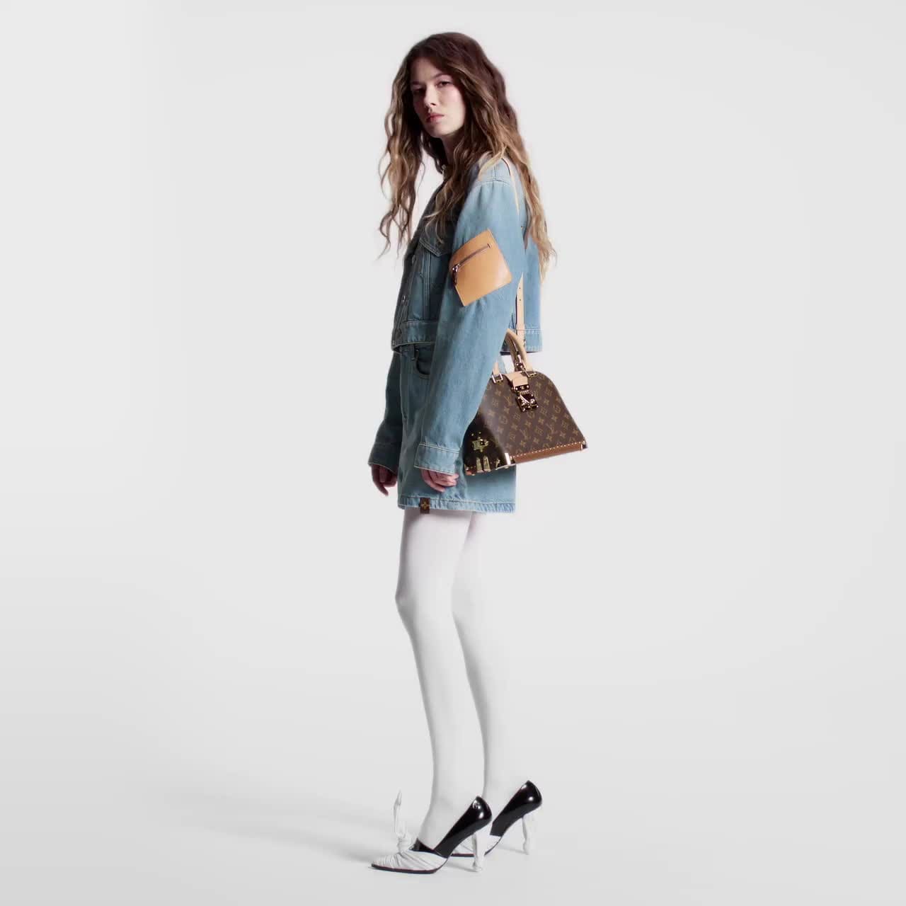Após a reinterpretação da Speedy com estrutura rígida, Nicolas Ghesquière dedica sua habilidade criativa à icônica bolsa Alma retomando os elementos únicos dos baús da Maison, desde os lozines até os cantos metálicos.