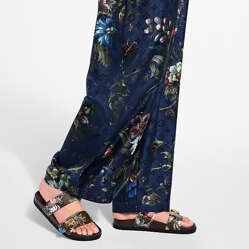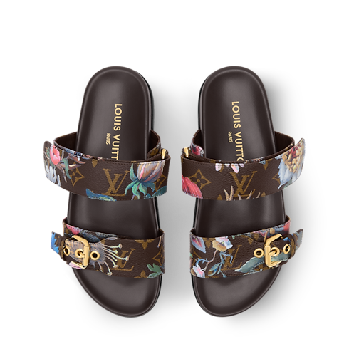 This iteration of the Bom Dia comfort mule comes in Monogram canvas printed with a floral chintz motif, which was inspired by the handbags of the Spring-Summer 2026 show. A staple of the Louis Vuitton shoe collection, this relaxed mule has two adjustable straps: one with velcro, the other with a gold-toned buckle and eyelets.