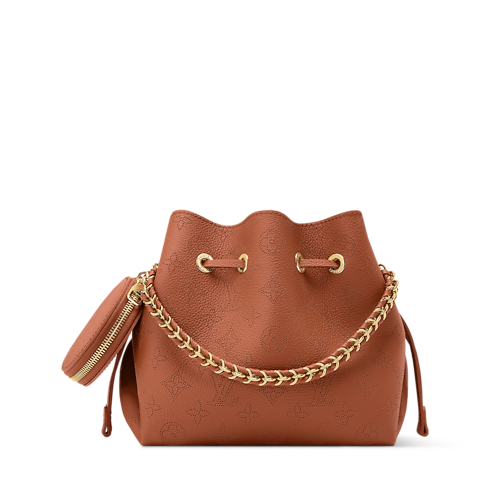 The Mahina collection reimagines the classic Bella handbag in a timeless Cognac colorway that complements most looks. It is crafted from perforated calfskin, showcasing the House’s signature Monogram pattern, and is elevated with a gold-toned braided chain. The compact style is sized to fit the essentials and comes with a round coin purse to store loose change. It can be styled multiple ways for day or night, with or without the longer strap.