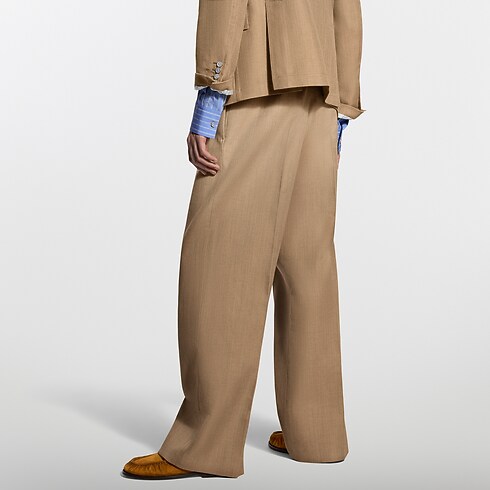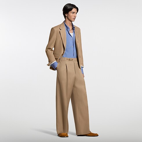Esta calça de lã e seda em tom camelo apresenta uma silhueta elegantemente drapeada, graças ao plissado frontal e ao cós elástico. Detalhes criativos incluem uma fivela esportiva inspirada no tema de montanhismo desta coleção, enquanto um discreto bordado exclusivo enfeita o bolso traseiro. Perfeita para compor os looks elegantes e despretensiosos da temporada, transforma-se em um conjunto contemporâneo quando combinada com a jaqueta correspondente.