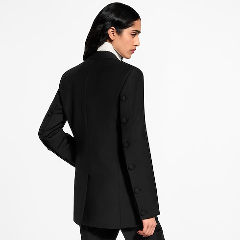 Contemporary codes rework this classic blazer with a playful twist. It is tailored from a structured blend of wool and mohair in a fitted shape with sharp notched lapels and two flap pockets for a timelessly dressy look, while the sleeves are finished with oversized tone-on-tone buttons running the length of each arm for versatile styling.