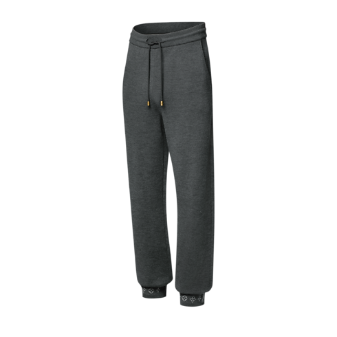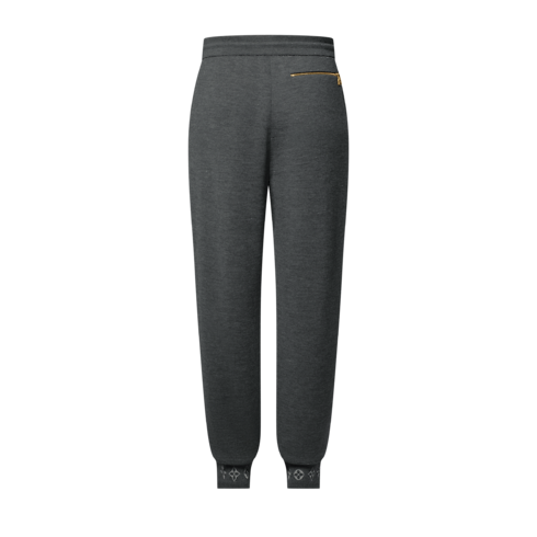 Combinando conforto e elegância, esta calça de lã orgânica cinza-escuro é dupla face, com interior em algodão macio. A silhueta minimalista se destaca pelo Monogram em jacquard nos punhos. Cria um look de viagem elegante quando combinada com uma jaqueta da mesma linha.