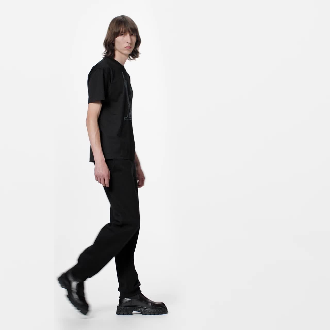 Em algodão aveludado escovado, essa calça esportiva traz uma das cores icônicas dessa coleção, realçada pelo cordão branco contrastante na cintura. A assinatura Louis Vuitton aparece bordada em branco acima do bolso frontal esquerdo. O pin em formato de grampo, no mesmo tom, dá o toque final.