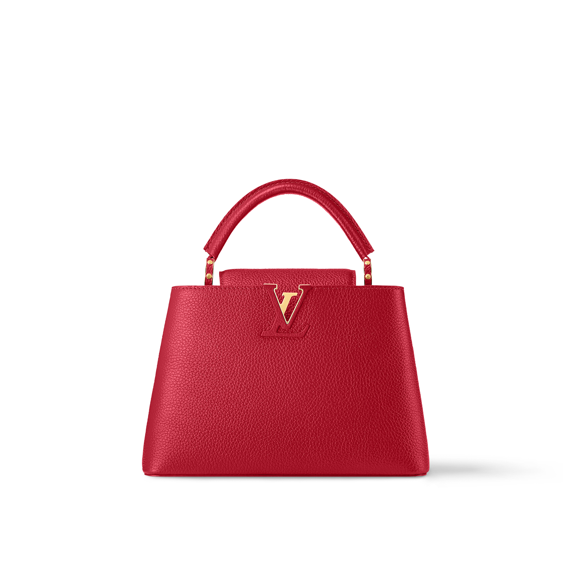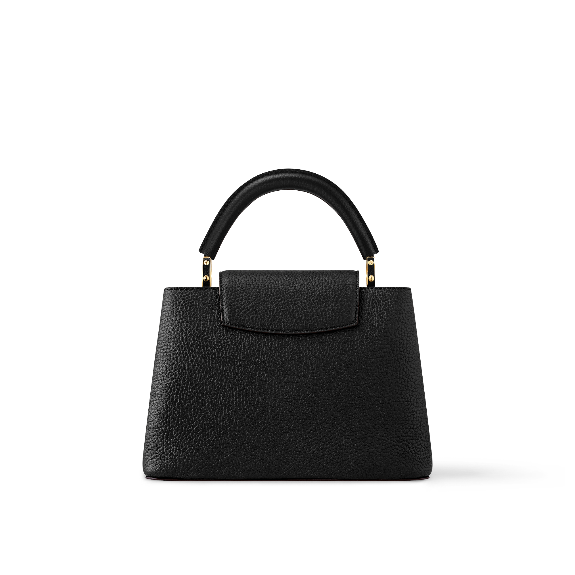 De couro Taurillon granulado, a clássica bolsa Capucines BB exibe itens exclusivos da Maison: LV Initials revestidas de couro, suportes da alça inspirados nos baús tradicionais e inconfundível aba com Monogram Flower. Pode ser carregada na mão ou na transversal pela alça removível. A Capucines leva o nome da rua parisiense onde Louis Vuitton inaugurou sua primeira loja.