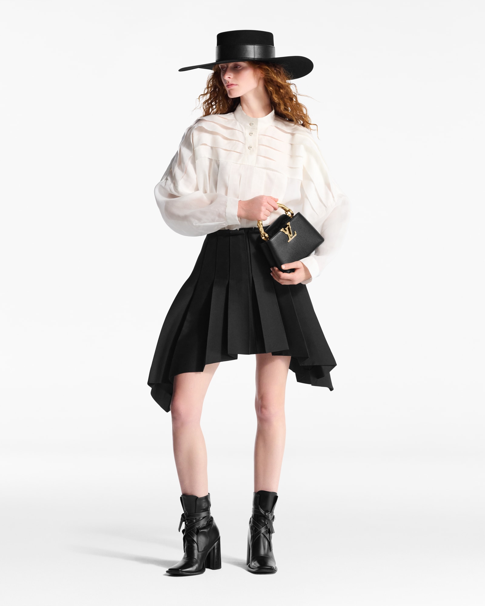 O diretor-criativo Nicolas Ghesquière idealizou a linha LV Acanto para a coleção Cruise 2025 inspirado no movimento arquitetônico Art Nouveau. Um verdadeiro item de colecionador, esta Capucines Mini é confeccionada em couro de vitelo e couro píton Karung, além de contar com um bolso interno. A alça dourada e as LV Initials são trabalhadas à mão para criar um acabamento retrô. Versátil, pode ser usada de várias maneiras.