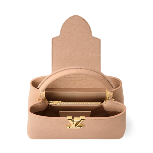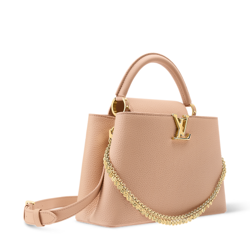 This Capucines MM is updated in a chic Hazelnut shade as part of the LV Confetti collection. Showcasing the House’s quality craftsmanship, it is made from Taurillon leather embellished with a gold-toned decorative chain that matches the signature LV Initials. The double-carry style can be worn with the flap on the inside or outside, and is sized to fit daily essentials including a small makeup bag.