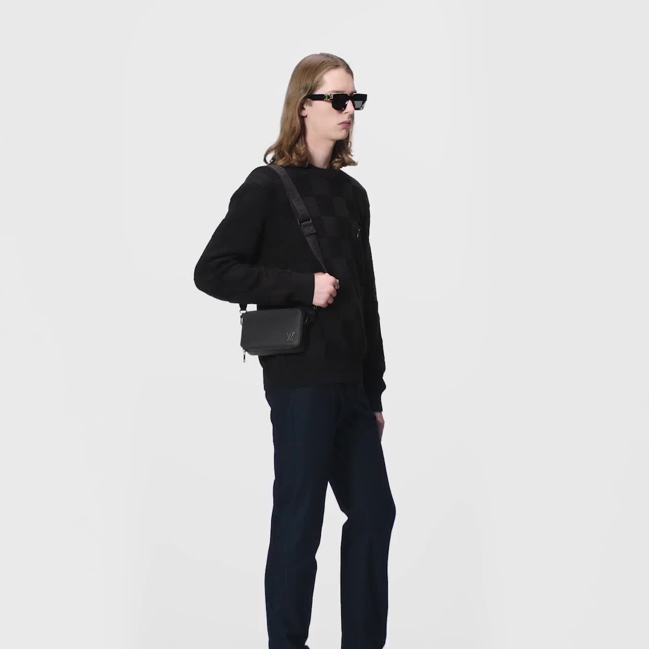 A versátil carteira na transversal Alpha é confeccionada em couro de vitelo granulado com ferragens discretas na cor preta. Fácil de carregar, graças à sua alça removível e ajustável, ela revela um interior reforçado, grande o suficiente para acomodar dois celulares, bem como dinheiro, cartões e outros itens essenciais pequenos.