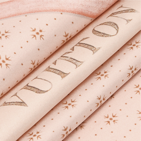 The creative design of the Chez Elle square was inspired by the labels that once adorned the classic Louis Vuitton trunks. Printed on sumptuous silk, it transforms these symbols of historic journeys into a bold, contemporary graphic statement. More than an accessory, this versatile square is a collector’s item, infused with timeless sophistication and the spirit of travel.