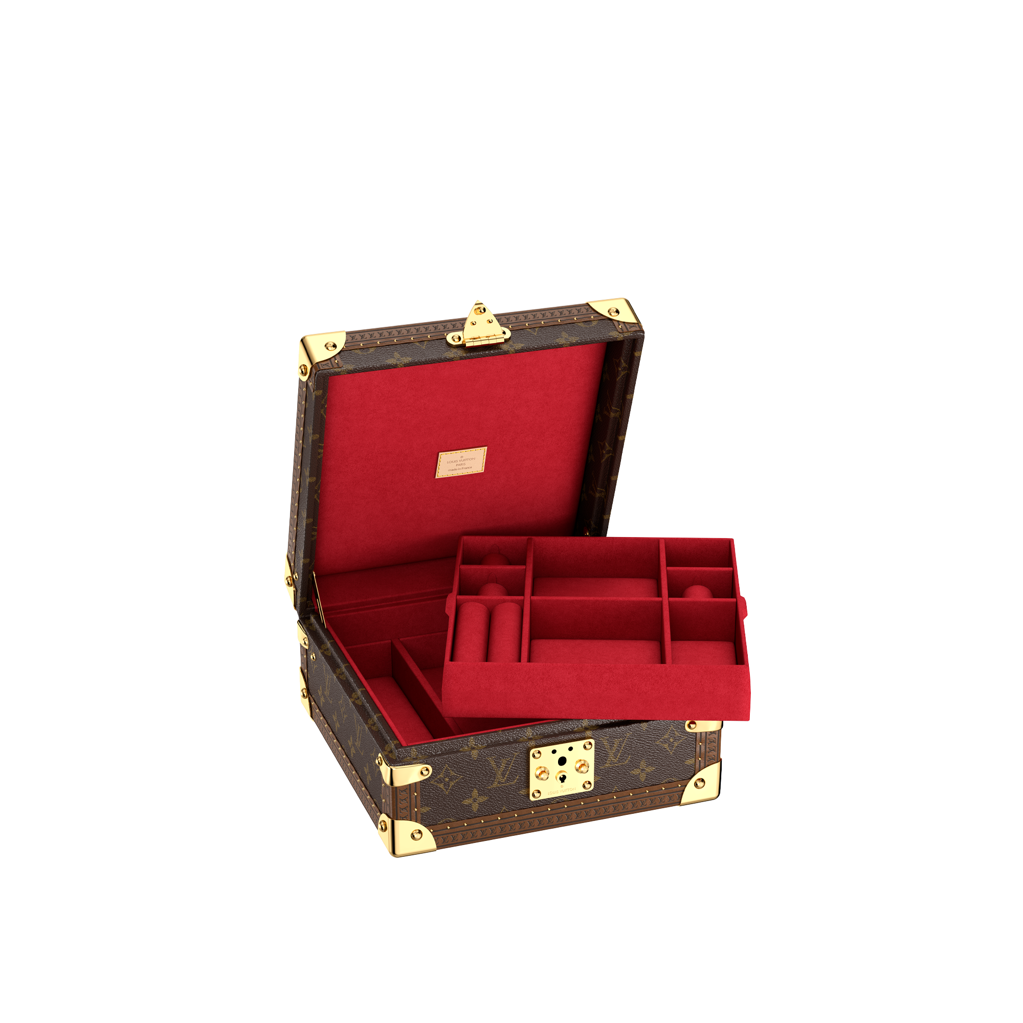 Esta elegante caixa de joias oferece diversos compartimentos para transportar anéis, colares, pulseiras e brincos. As joias ficam organizadas e bem guardadas graças a pequenas almofadas. Com tamanho prático e fechamento seguro, é um acessório essencial para todas as viagens.