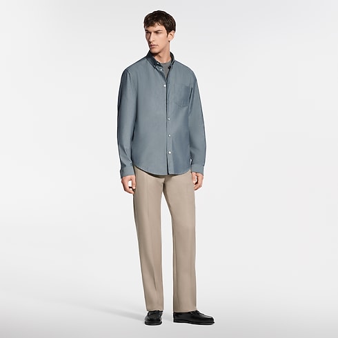Camisa de Manga Longa em Cambraia de Algodão e Seda