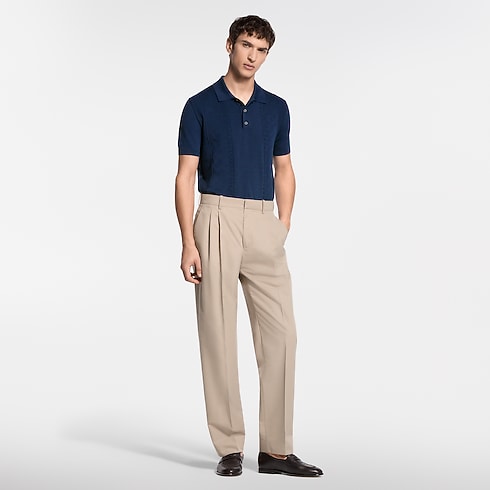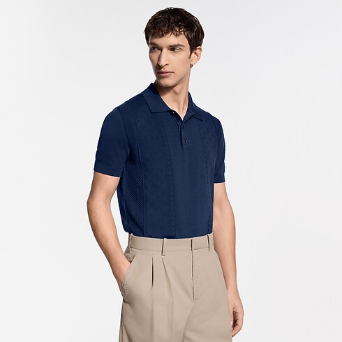Esta polo de manga curta em azul escuro é confeccionada em fio de algodão-seda de alta qualidade, com delicada malha perfurada na parte da frente, além de detalhes sofisticados como discretas assinaturas Monogram e Damier. Um bordado tom sobre tom complementa a barra inferior esquerda, enquanto um patch de couro LV assina a parte de trás. Macia e respirável para os dias mais quentes, esta peça oferece conforto excepcional e acrescenta um toque preppy ao visual formal.