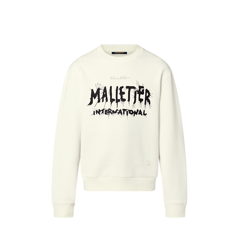 Este suéter monocromático casual traz uma vibe artística para visuais do dia a dia. Confeccionado em jersey de algodão escovado branco, tem a assinatura Malletier International no peito, impressa com um divertido efeito de mancha de tinta preta, enquanto as costas apresentam o grafismo Damier Painting. Um Vuitton bordado no mesmo tom e o emblema LV completam esta peça.