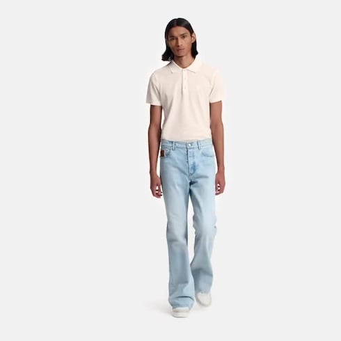 Esta camisa polo básica em piqué de algodão orgânico apresenta um discreto jaquard Damier e uma assinatura Marque L.Vuitton Déposée bordada no lado esquerdo do peito. Três botões com efeito perolado conferem um toque dândi a esta peça, ideal para para compor diversos looks no dia a dia.