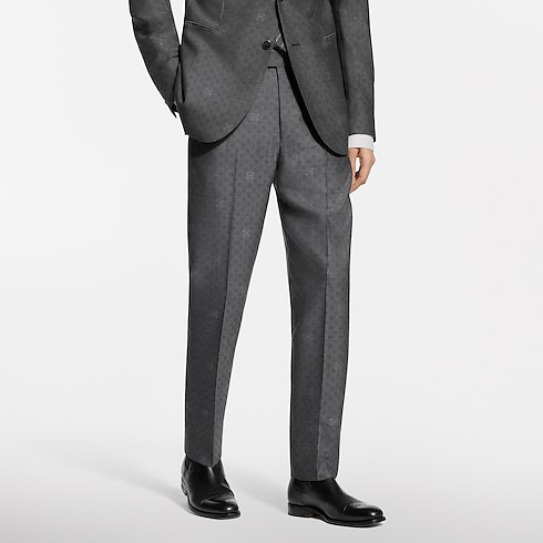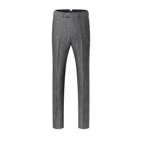 Confeccionada em cinza-escuro atemporal, esta elegante calça cigarrete é ideal para ocasiões formais. A lã fina é trabalhada em jacquard tom sobre tom com uma sofisticada padronagem Mini Damier Seeds, que traz as Flores do Monogram com um efeito suavemente pontilhado, enquanto uma etiqueta com LV na trama assina o cós atrás. Compõe um conjunto impecável com um blazer da coleção.