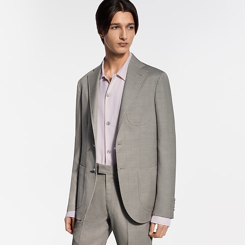 Este blazer Napolitana de abotoamento simples em bege-claro é confeccionado em lã virgem refinada, com uma delicada padronagem Micro Flower Damier em jacquard tom sobre tom e botões perolados exclusivos. A delicada alfaiataria de inspiração italiana cria uma silhueta naturalmente elegante. Combinada com uma calça cigarrete, compõe um terno refinado e moderno que pode ser usado em situações de negócios, eventos noturnos de verão ou casamentos.