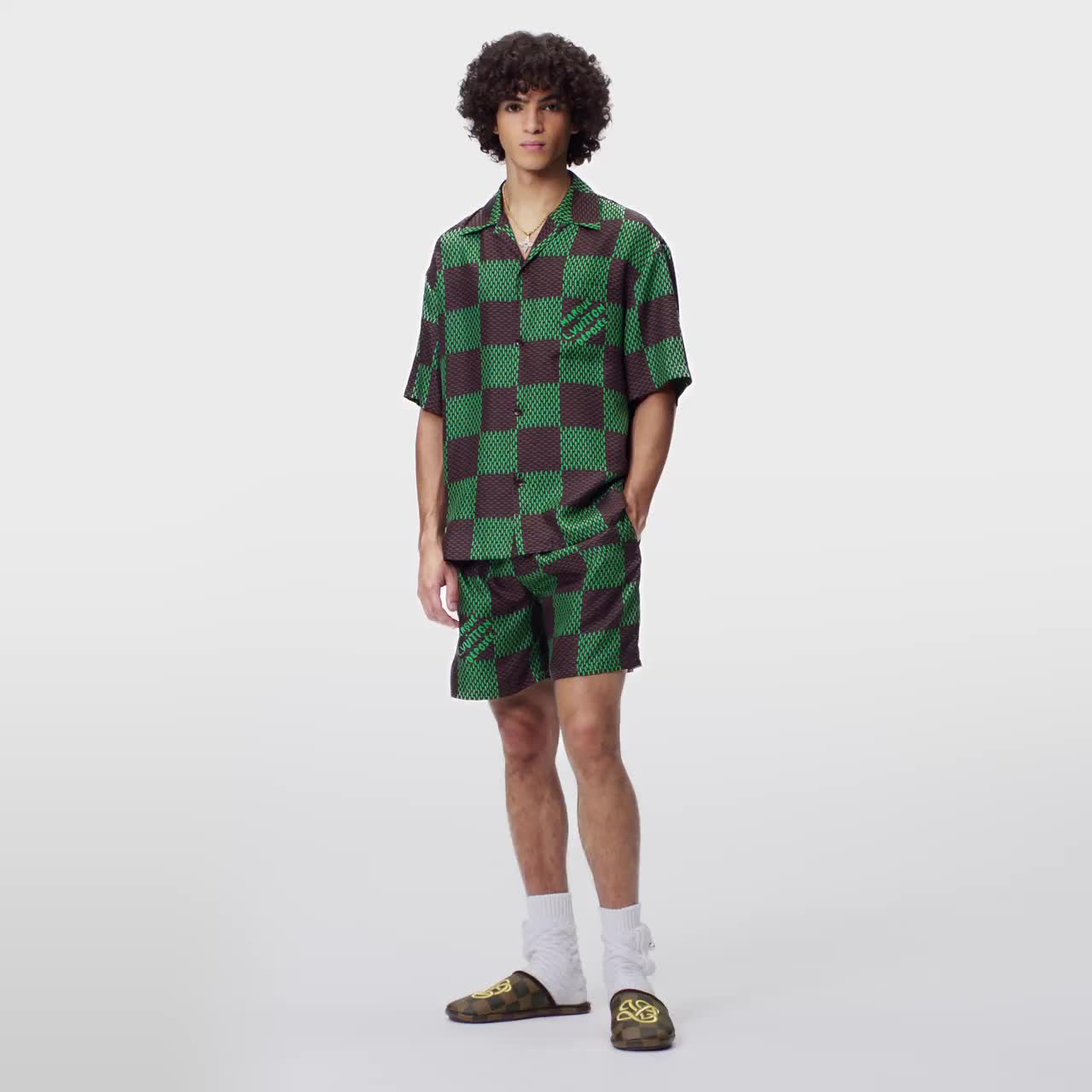 Este short de seda da coleção Spring-Summer 24 é marcado pelo vibrante padrão Damier Pop na trama em jacquard, nas cores verde e preta. O confortável cós com cordão confere um drapeado sofisticado à peça, que pode ser combinada com uma camisa no mesmo estilo para um look descontraído e refinado para o dia ou para a noite.