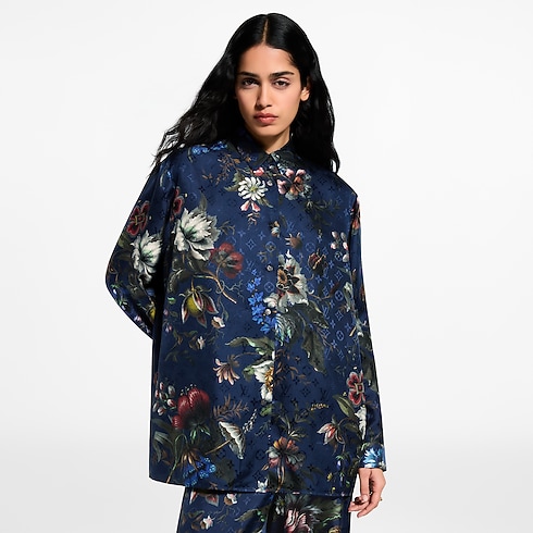 Esta sofisticada camisa de seda é reinventada para a temporada com uma estampa floral envolvente em tons escuros, enquanto um sedoso jacquard Monogram adiciona uma assinatura sutil por toda a peça. Confeccionada em modelagem reta e fluida, apresenta gola elegante, punhos abotoados e fechamento frontal por botões, em um acabamento clássico e refinado.