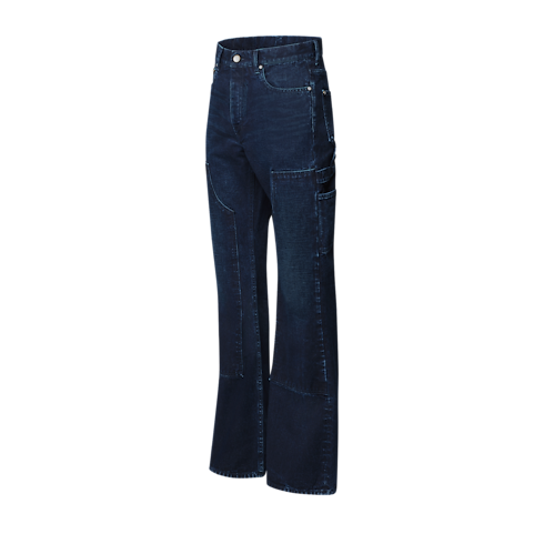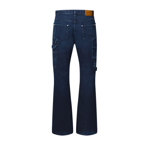 Com modelagem boot cut e cintura alta, esta calça utilitária é confeccionada em jeans japonês com tons de azul-índigo escuro estonado. Os detalhes práticos ganham sofisticação com o botão e os rebites de efeito perolado, trazendo um toque exclusivo aos looks casuais. Com uma etiqueta Damier atrás, a peça combina com uma jaqueta da mesma linha, compondo um conjunto contemporâneo.