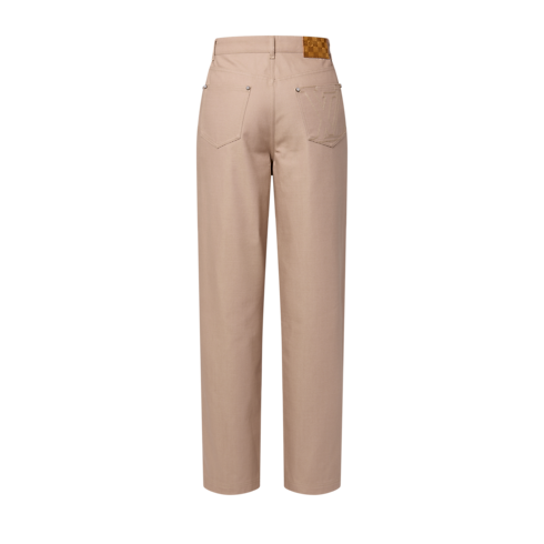 Esta calça jeans utlitária é confeccionada em canvas de algodão e tem elegantes tons de areia, fáceis de usar e combinar. Com um corte descontraído, ela se destaca pelas letras LV bordadas no bolso traseiro direito e pela etiqueta Damier em couro Nubuck. Quando combinada com uma jaqueta da mesma linha, cria um visual contemporâneo.