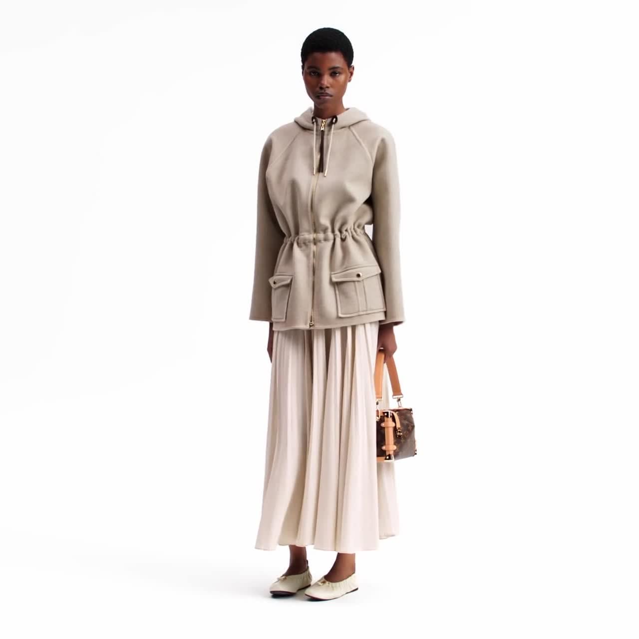 Esta parka com zíper é confeccionada em uma leve mescla dupla face de lã, cashmere e seda, trazendo sofisticação aos looks do dia a dia. O capuz com cordão ajustável e a cintura regulável conferem um sutil toque esportivo, enquanto os bolsos com aba estruturam a região do quadril. Detalhes com o Monogram completam o visual com uma assinatura elegante.