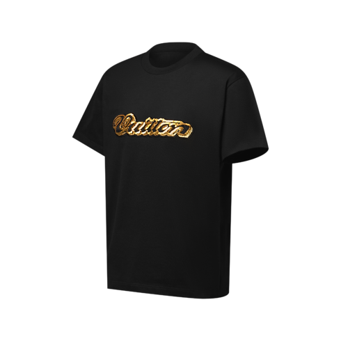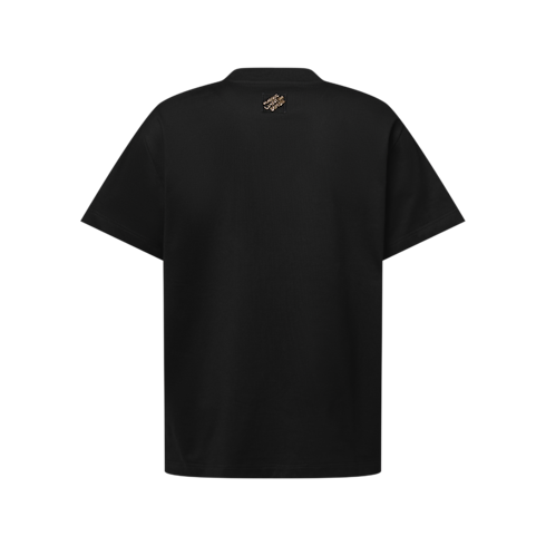 Esta elegante camiseta de algodão acrescenta sofisticação a looks casuais. Confeccionada em preto intenso, traz a assinatura Vuitton manuscrita, bordada com paetês dourados no peito. Atrás, delicadas contas douradas destacam as letras de “Marque L.Vuitton Déposée” sob a gola.