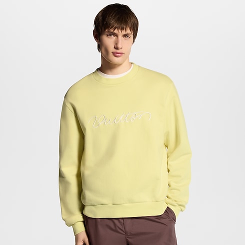 This long-sleeved cotton crewneck in soft vanilla yellow is perfect for spring. Replicating one of Pharrell Williams’s favorite sweaters, it features contrasting white Vuitton lettering across the chest in an elegant cursive script, captured in 3D embroidery. This effortless piece is easy to mix and match with casual staples in this season’s pastel tones.