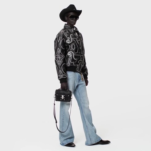 Esta exclusiva jaqueta bomber de couro traz o icônico padrão LV Arabesque do desfile Fall-Winter 2024. Pespontos meticulosamente bordados com fios contrastantes criam um relevo levemente matelassado no couro macio. Já o puxador de zíper com pérola confere um toque dândi elegante a esta sofisticada peça da coleção.