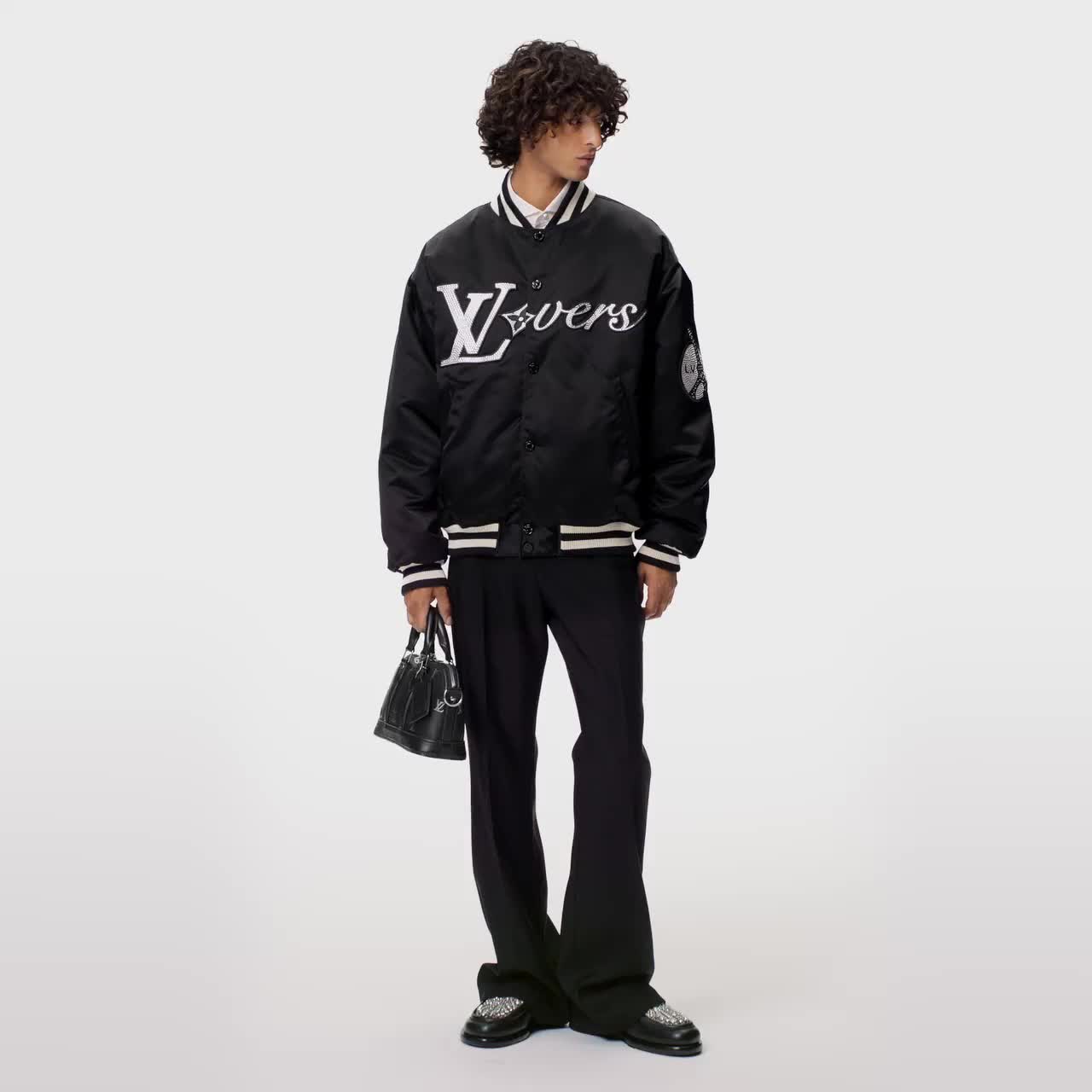 Esta jaqueta de baseball é a um modelo americano clássico com um toque refinado: os detalhes exclusivos do desfile Spring-Summer 24. Patches bordados com cristais valorizam o tecido tecnológico preto brilhante, com a assinatura LV Lovers no peito e um LV com a Torre Eiffel na manga esquerda. Levemente acolchoada, esta peça é perfeita para criar looks casuais para o dia todo.