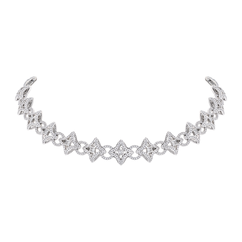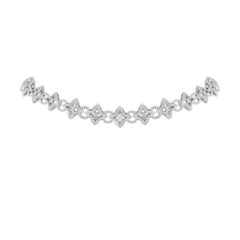 Combinando uma estética contemporânea com um toque de tradição, a coleção Ever Blossom transmite uma elegância sofisticada. Seu design traz um ícone histórico da Louis Vuitton, a Flor do Monogram. A repetição desses símbolos emblemáticos, todos em ouro branco e com diamantes selecionados manualmente, arrebatam o olhar. Os volumes esculturais, combinados com o trabalho delicado na parte de trás de cada Flor, conferem sofisticação à peça. O fecho perfeitamente integrado proporciona um acabamento refinado e demonstra a cuidadosa atenção da Maison aos detalhes.