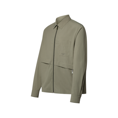 Esta camisa de manga longa com zíper em tom cáqui inspirada no tema montanhismo chic do desfile Spring-Summer 2026 vem em tecido tecnológico leve com detalhes práticos. Dois bolsos com zíper posicionados de forma assimétrica acrescentam um toque arrojado e contemporâneo à parte frontal, enquanto o bordado tom sobre tom assina o bolso no peito. Esta peça pode ser usada como uma camisa tradicional ou como camisa oversized, sobreposta a uma camiseta.
