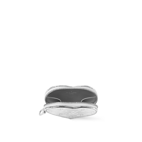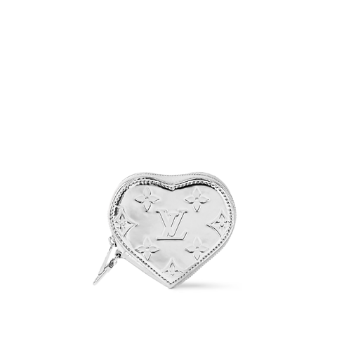 Parte da coleção LV Ski, o porta-moedas Coração traz um design divertido que se destaca também fora das pistas. Ele é confeccionado em canvas prateado, valorizado com o histórico Monogram Miroir da Maison. A corrente no mesmo tom confere um toque final refinado, e funciona como alça de punho.