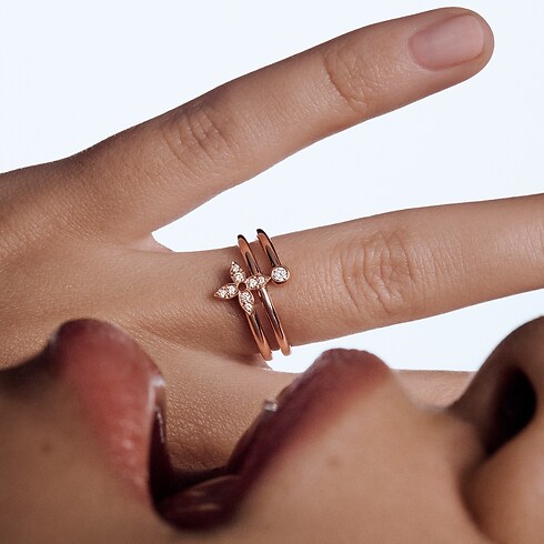 Anel Múltiplo Idylle Blossom em Ouro Rosa e Diamantes