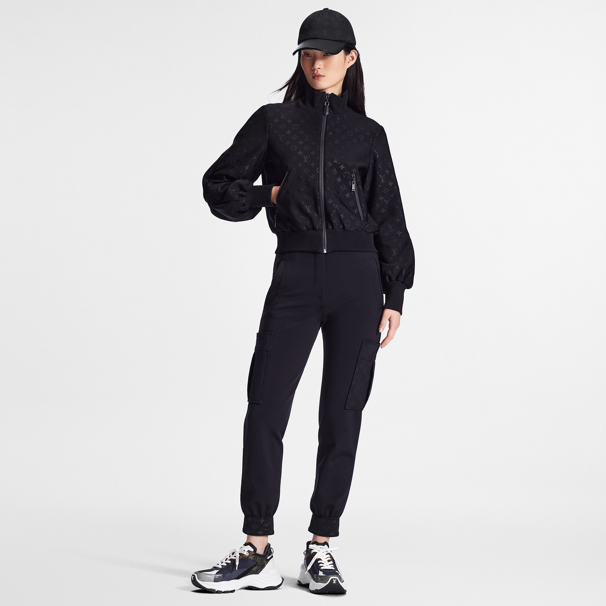 Detalhes sutis transformam esta jaqueta clássica com zíper em uma peça essencial e chic. Confeccionada no icônico jersey tecnológico da Maison, ela apresenta a emblemática padronagem Monogram em alto-relevo da estação, complementada pelos zíperes revestidos. O volume da bainha e das mangas caneladas completam o estilo sofisticado e esportivo da peça.