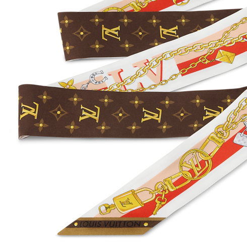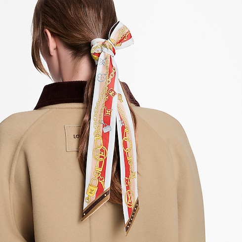The elegant K Charms bandeau captures the spirit of Louis Vuitton in an enchanting, ultra-feminine design. Printed on pure silk, its pattern features a chain holding an array of symbolic charms evoking the Monogram signature and the House’s travel heritage. Ideal for everyday wear, this sophisticated bandeau adds a subtle touch of chic to any outfit.