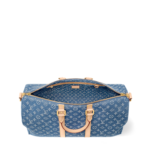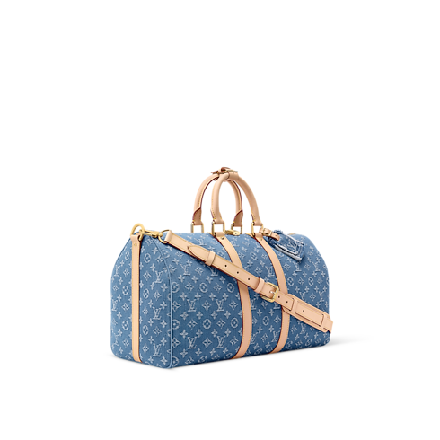 A bolsa de viagem Keepall Bandoulière 45 vem no icônico jeans Monogram, complementado por ferragens douradas. O resultado é um visual ousado e naturalmente despojado, inspirado no streetwear. A tag de identificação removível apresenta um efeito de jeans desgastado e é assinada com as LV Initials. Alças superiores e uma alça ajustável e removível oferecem formas versáteis de uso.