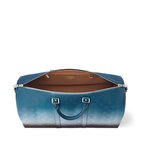 Inspirada nos vibrantes e ousados tecidos da Índia, esta bolsa de viagem Keepall Bandoulière 50 em canvas Monogram Pigment é uma explosão de alegria cromática. O icônico motivo Monogram Ébène ganha uma nova expressão com um sofisticado efeito degradé, presente em cada detalhe. Os acabamentos em couro, as alças superiores e a alça removível exibem o tom mais intenso do degradé, conferindo elegância à peça.