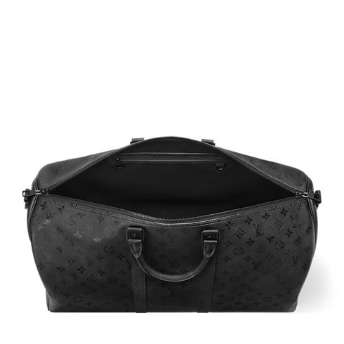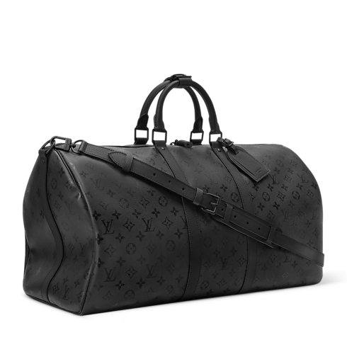 A combinação de preto sobre preto confere um estilo discreto à bolsa de viagem Keepall Bandoulière 55 em canvas Monogram Midnight. Couro preto granulado e ferragens em preto fosco complementam o design sofisticado. A alça ajustável e removível proporciona conforto ao carregar no ombro, enquanto seu tamanho de cabine a torna a companheira ideal para escapadas de fim de semana.