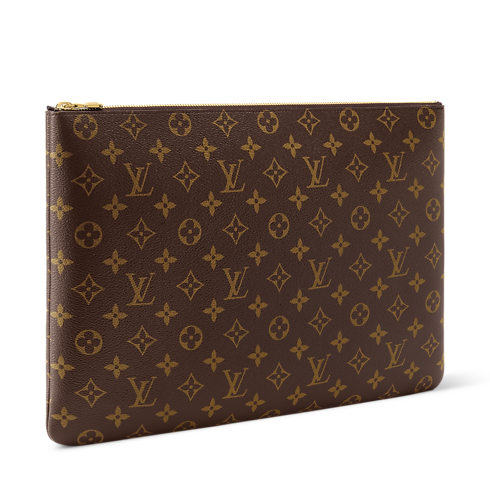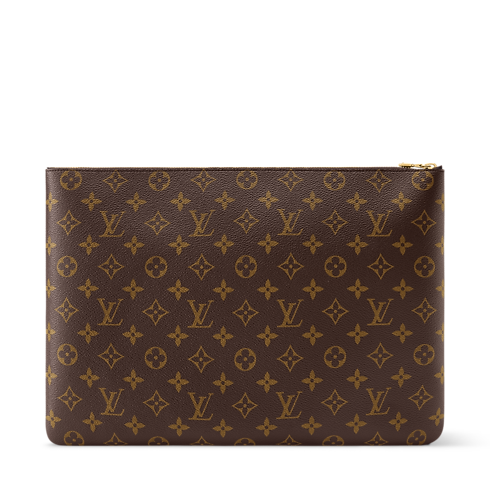 Mantenha documentos valiosos organizados dentro do novo porta-chave L, uma novidade na coleção histórica da Maison lançada nos anos 80. Este modelo elegante é confeccionado no icônico canvas Monogram, realçado por clássicas ferragens douradas. Além de acomodar documentos, é do tamanho ideal para um laptop e pode ser carregado na mão ou guardado com discrição em uma bolsa maior ou mala.